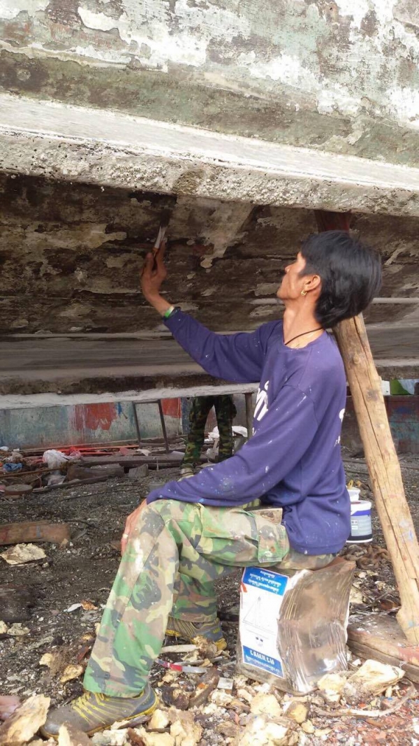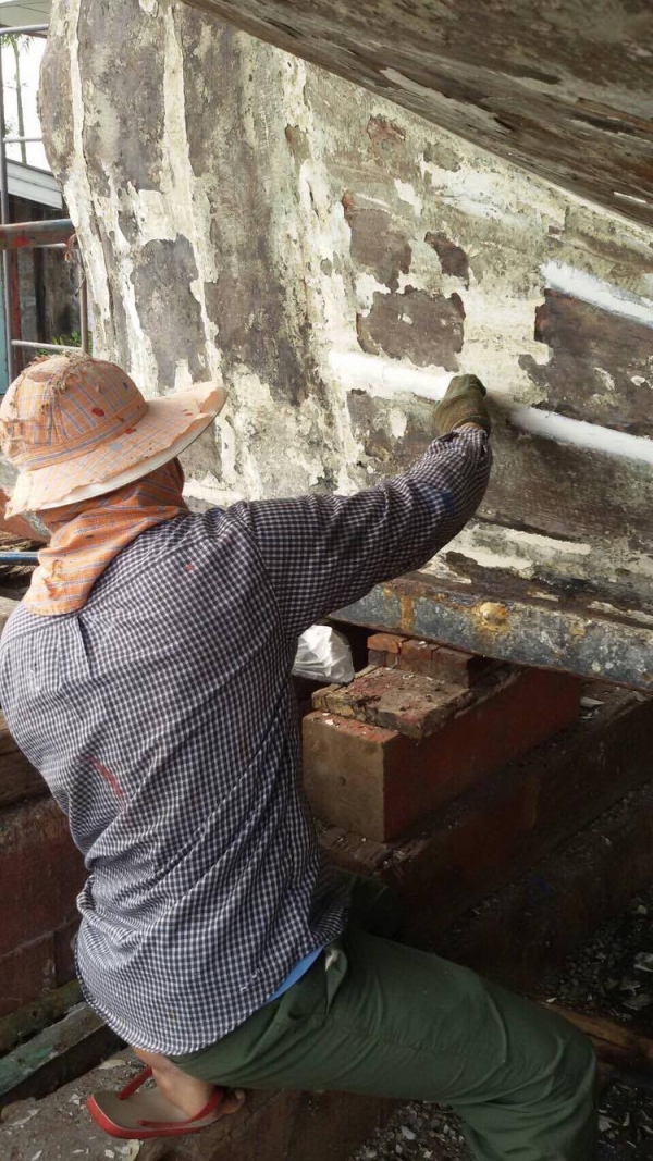 2. ขูดเพรียงที่เกาะใต้ท้องเรือออก