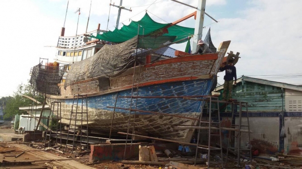 4. ช่างหมันงัดแนวเรือที่เสียหายออก