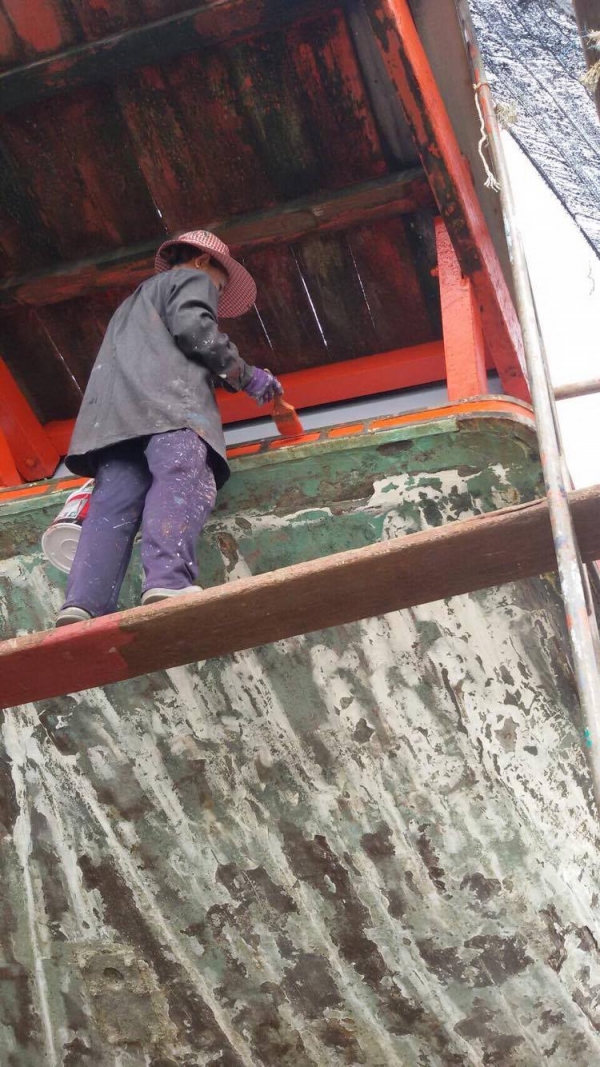 1. ล้างเรือที่นำขึ้นคานเรียบร้อยแล้ว เพื่อเอาตะไคร่ออก