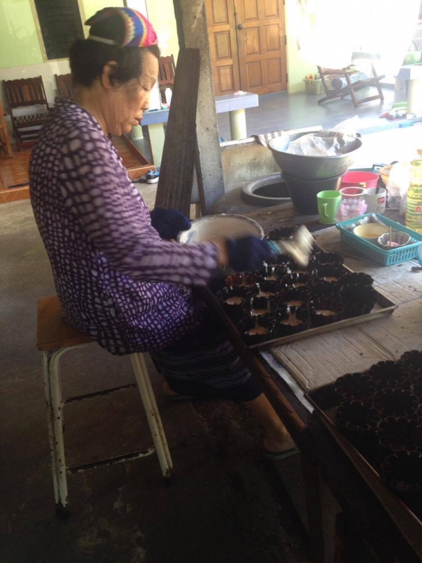 4. หยอดส่วนผสมลงในพิมพ์