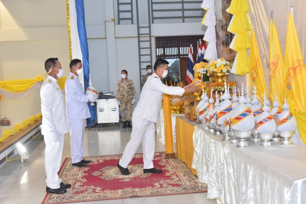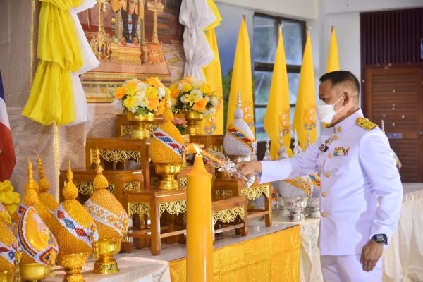 ซึ่งโอกาสนี้ นายศรัณย์ เกตุทอง นายอำเภอบ้านแหลม ประธานในพิธีถวายเครื่องราชสักการะ วางพานพุ่มเงิน พุ่มทอง และเปิดกรวยกระทงดอกไม้ธูปเทียนแพ หน้าพระบรมฉายาลักษณ์พระบาทสมเด็จพระวชิรเกล้าเจ้าอยู่หัว และจุดเทียนชัย