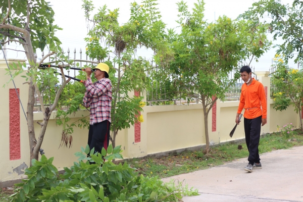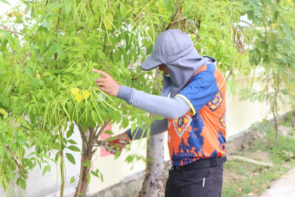 ร่วมกันทำความสะอาด เก็บ กวาด และตัดหญ้า