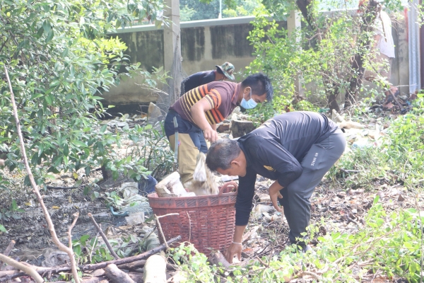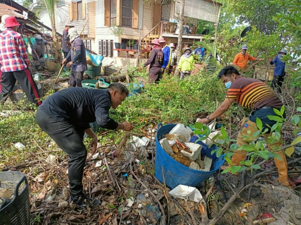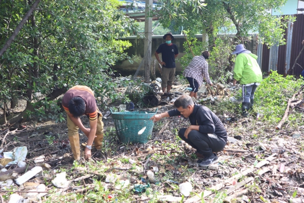 ลงพื้นที่ทำความสะอาดเก็บขยะสะสมจากกระแสน้ำพัดพาบริเวณคุ้งตาไปล่