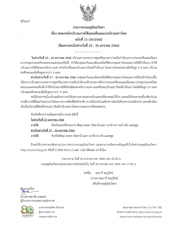 ประกาศกรมอุตุนิยมวิทยา ฉบับที่ 13