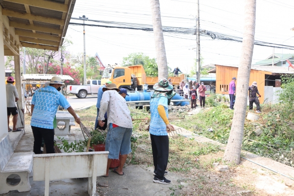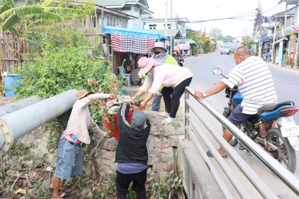 ลงพื้นที่ทำความสะอาด ตัดหญ้า และตัดกิ่งไม้คลองข้างวัดในกลาง หมู่ 3