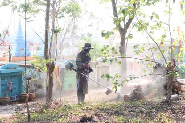 ลงพื้นที่ทำความสะอาดโดยการเก็บกวาดขยะ ตัดหญ้าและฉีดล้างพื้น บริเวณสุสานสาธารณะวัดต้นสน