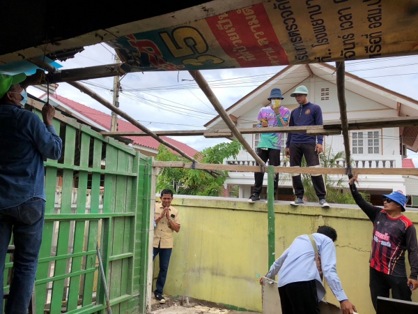 ซ่อมแซมหลังคาบ้าน และกั้นพนังห้องน้ำให้แก่นางพะเยาว์ งามเหมาะ บ้านเลขที่ 180/1 หมู่ 3