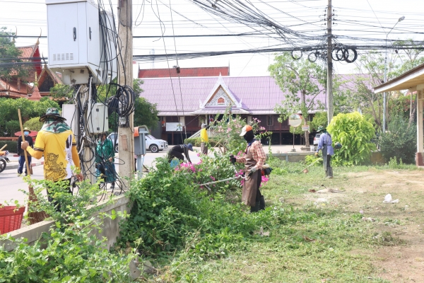 ลงพื้นที่เก็บกวาดขยะและตัดหญ้า บริเวณรอบศูนย์ทสปช.พื้นที่หมู่ 3