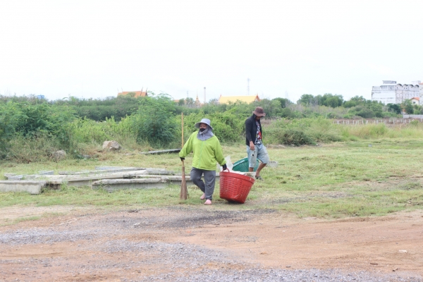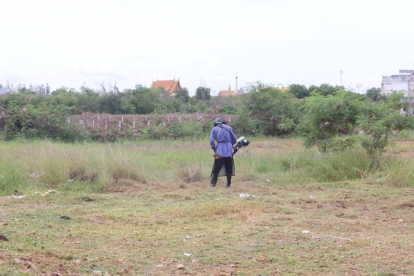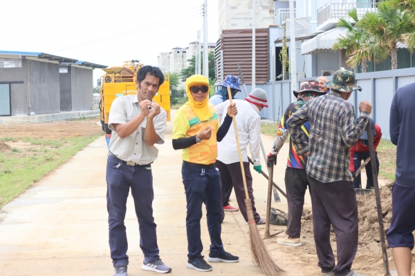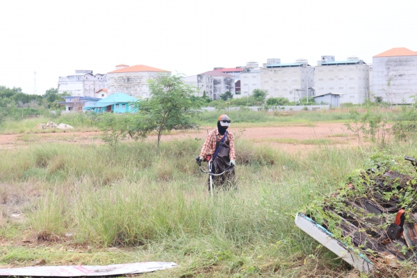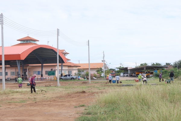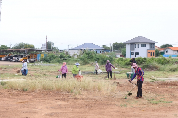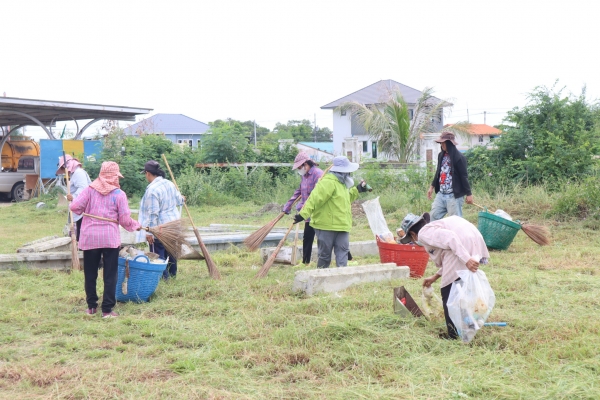 ลงพื้นที่เก็บกวาดขยะและตัดหญ้า บริเวณหลังสำนักงานเทศบาลตำบลบ้านแหลม