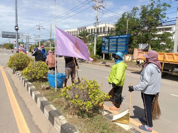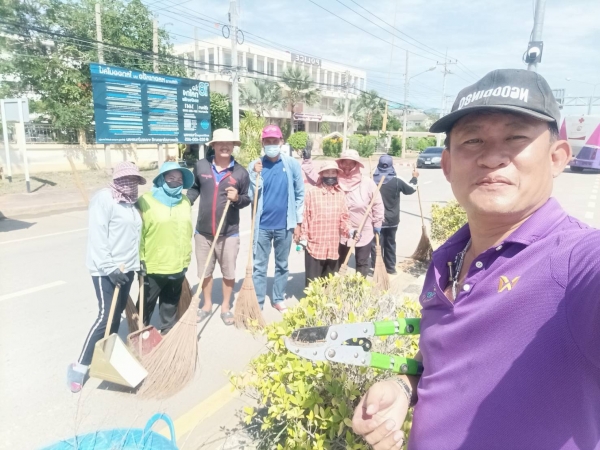 ลงพื้นที่พัฒนาทำความสะอาด โดยการเก็บ กวาดขยะ และตัดหญ้าบริเวณหน้าอำเภอบ้านแหลม