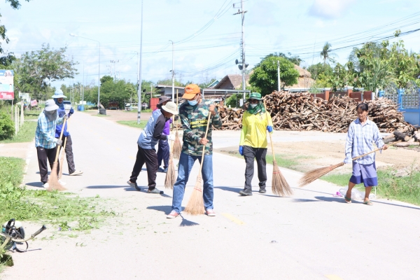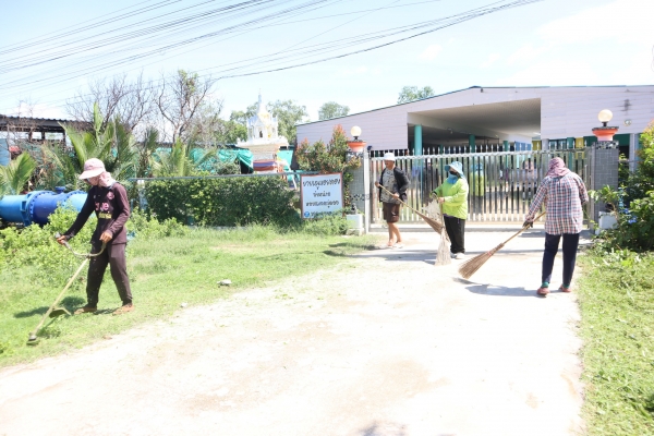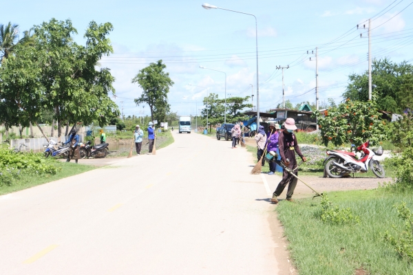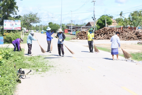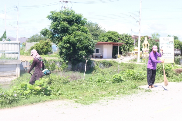 พัฒนาทำความสะอาด โดยการเก็บกวาดขยะและตัดหญ้าหมู่ที่ 5