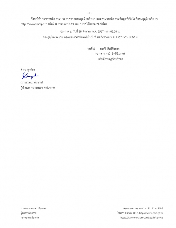 ประกาศกรมอุตุนิยมวิทยา เรื่อง ฝนตกหนักถึงหนักมากบริเวณประเทศไทย และคลื่นลมแรงบริเวณทะเลอันดามันตอนบน