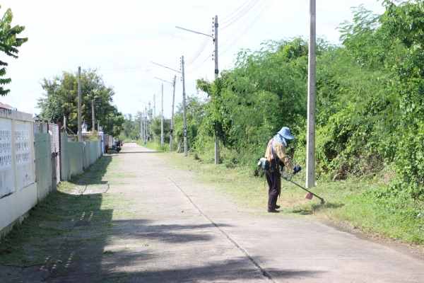 ลงพื้นที่พัฒนาทำความสะอาด โดยการเก็บ กวาดขยะและตัดหญ้า