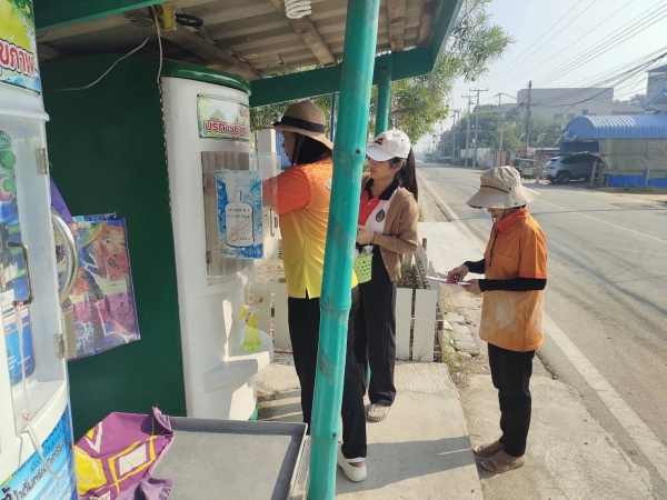 ลงพื้นที่ดำเนินการสำรวจและเก็บตัวอย่างน้ำจากตู้น้ำหยอดเหรียญ ทั้ง 9 ชุมชน เพื่อนำไปตรวจคุณภาพน้ำ