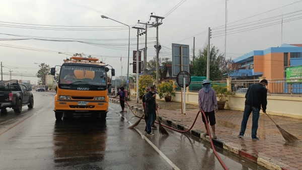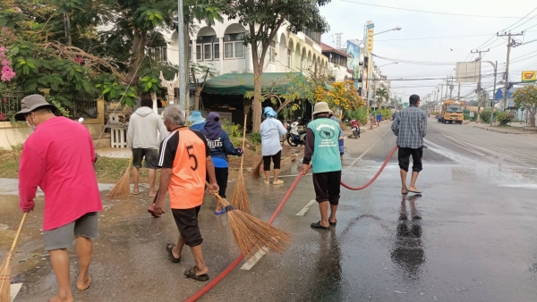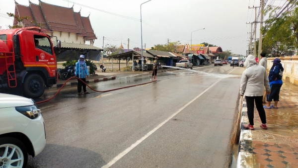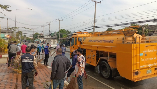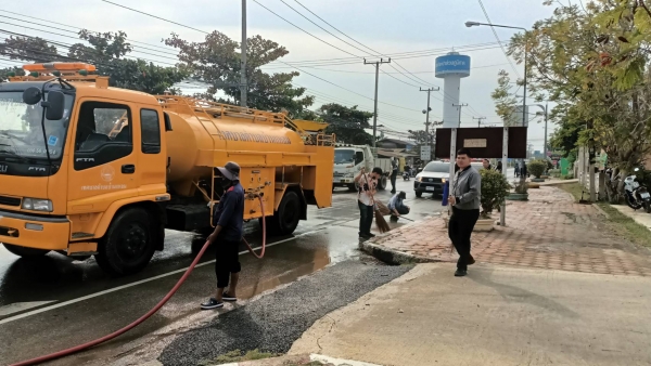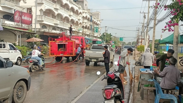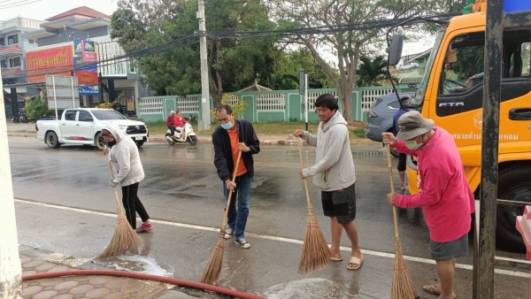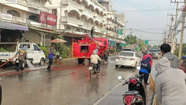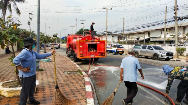 ลงพื้นที่ฉีดล้างถนนเพื่อลดปริมาณฝุ่น PM 2.5