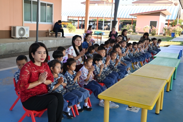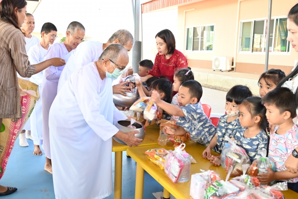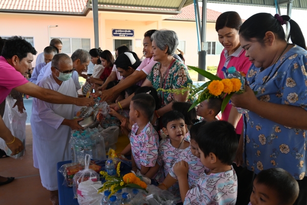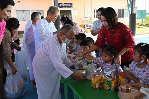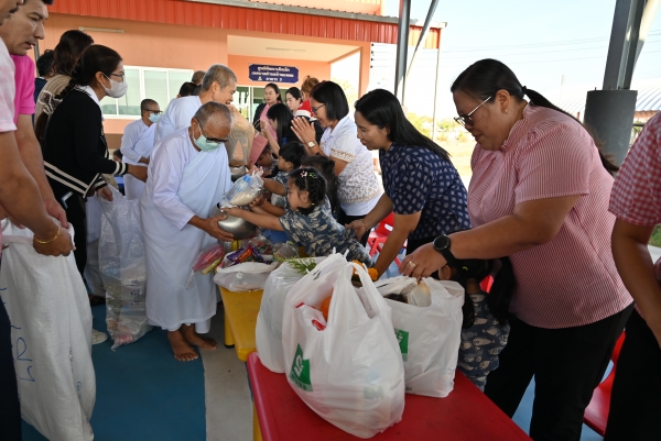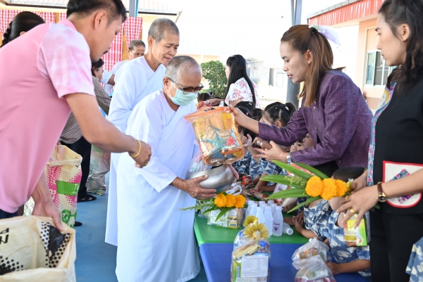 ศูนย์พัฒนาเด็กเล็กเทศบาลตำบลบ้านแหลมจัดกิจกรรมทำบุญใส่บาตร