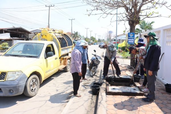 ลงพื้นที่ตักขี้เลนในท่อระบายน้ำหน้าโรงพยาบาลบ้านแหลม