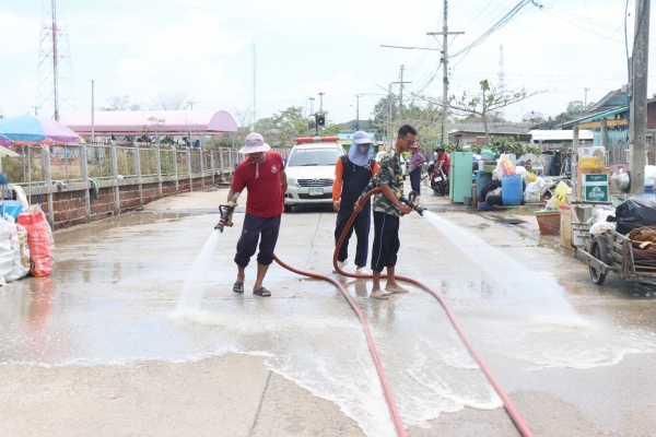 ลงพื้นที่ล้างถนนลดปัญหาฝุ่น pm 2.5 บริเวณถนนหลังโรงเรียนวัดในกลาง