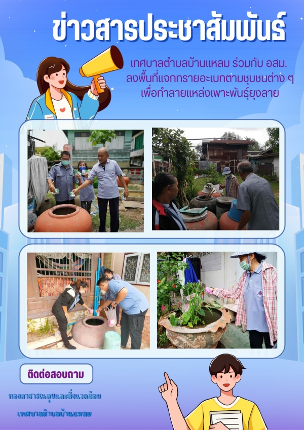 เทศบาลตำบลบ้านแหลม ร่วมกับ อสม. ลงพื้นที่แจกทรายอะเบท