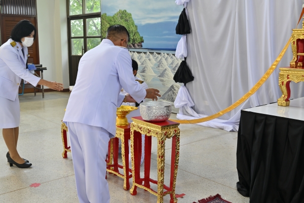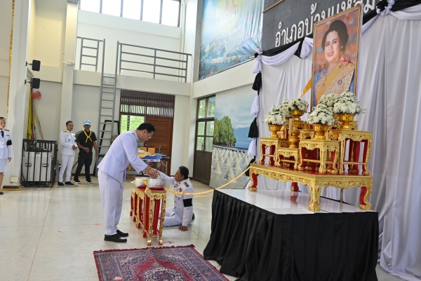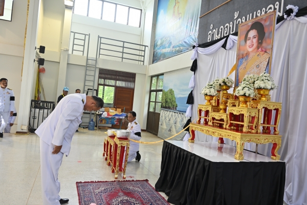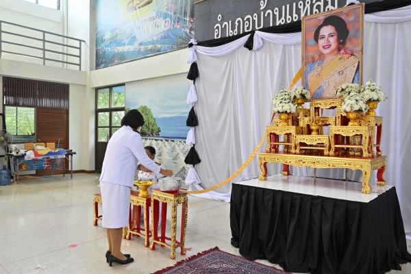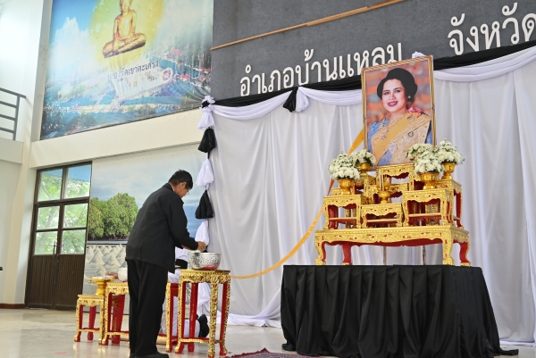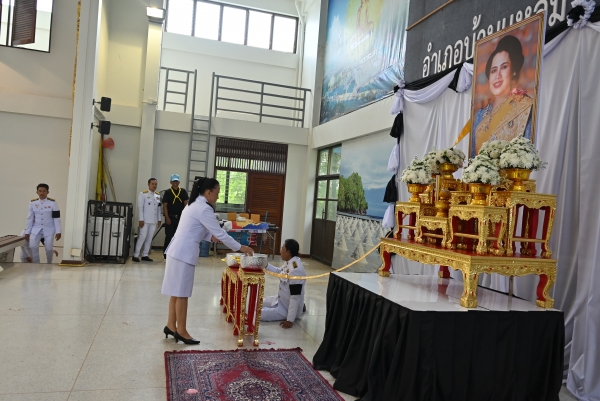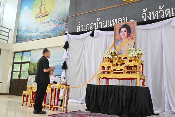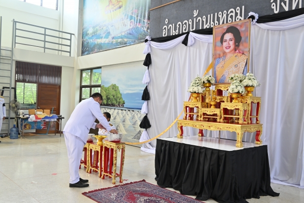 “พสกนิกรชาวอำเภอบ้านแหลม ร่วมถวายน้ำสรงพระบรมศพ เบื้องหน้าพระฉายาลักษณ์ สมเด็จพระนางเจ้าสิริกิติ์ พระบรมราชินีนาถ พระบรมราชชนนีพันปีหลวง