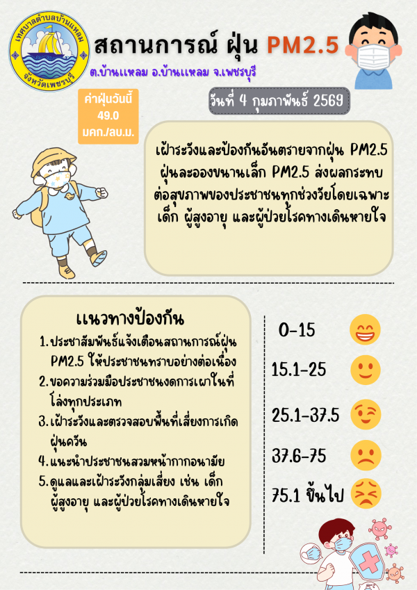 แจ้งเตือนค่าฝุ่น PM 2.5 (04/02/69)