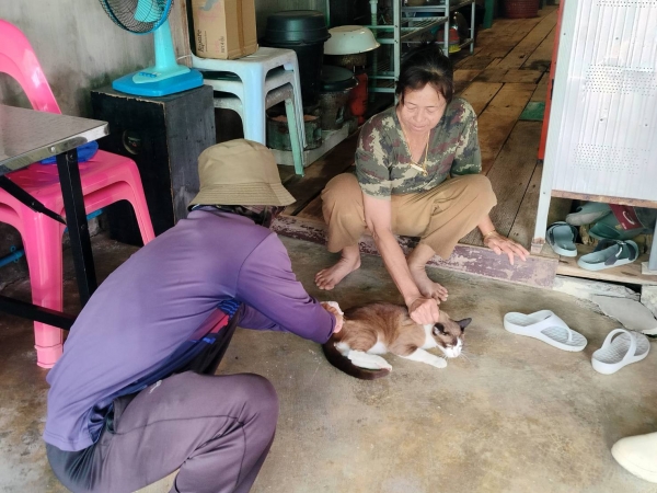 ฉีดวัคซีนป้องกันโรคพิษสุนัขบ้าให้แก่ก่สุนัขและแมวพื้นที่หมู่ 8