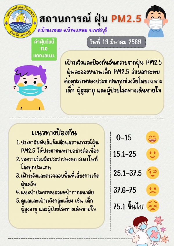 แจ้งเตือนค่าฝุ่น PM 2.5 (19/03/2569)