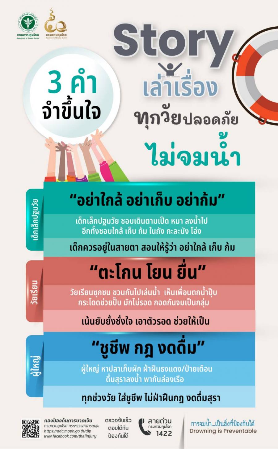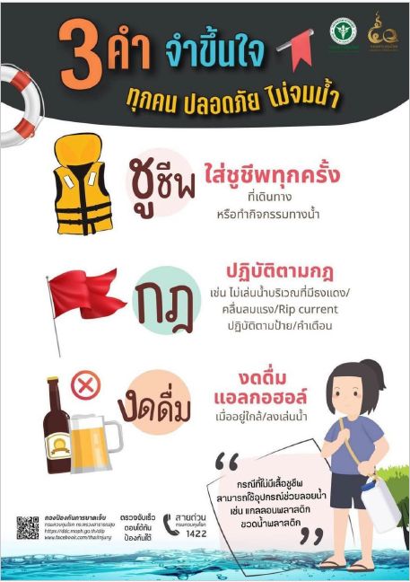 ส่วนพี่ๆ วัยรุ่นอย่าลืม "ตะโกน โยน ยื่น" และที่สำคัญที่สุดคือ "ชูชีพ กฎ งดดื่ม" นะครับ!