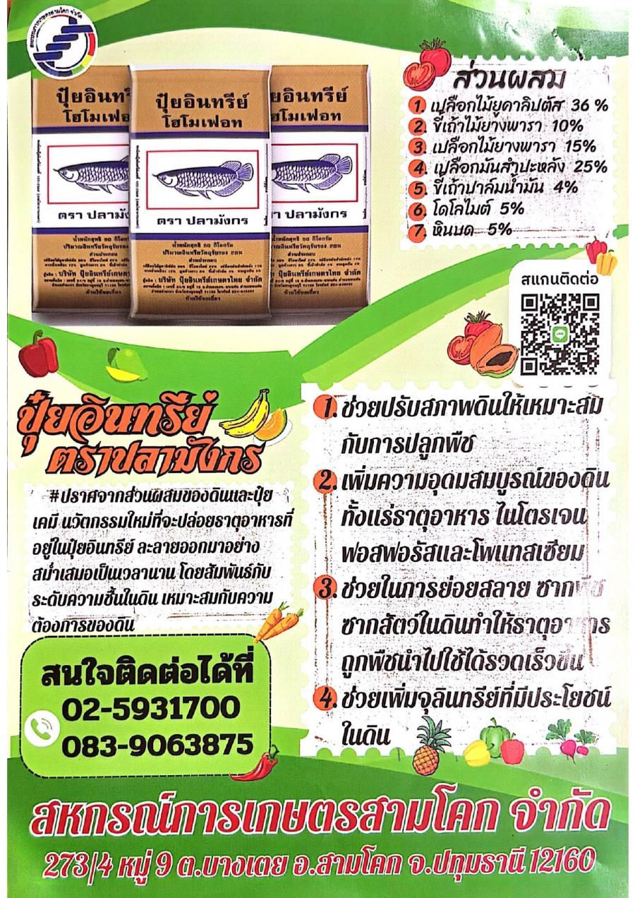 ประชาสัมพันธ์สั่งซื้อปุ๋ยอินทรีย์ตราปลามังกร
