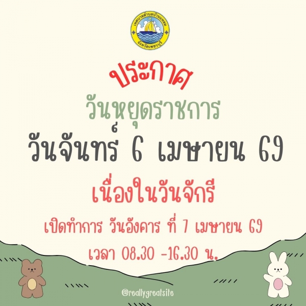 แจ้งวันหยุดราชการ เนื่องในวันจักรี
