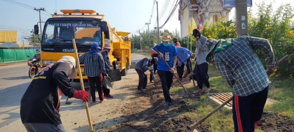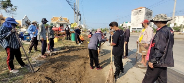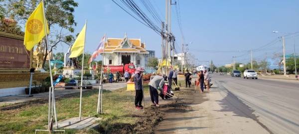 ร่วมกันตัดแต่งกิ่งไม้ ทำความสะอาดถนนสาธารณะบริเวณหน้าวัดลักษณาราม