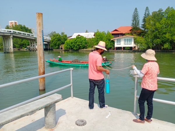 เก็บตัวอย่างน้ำคลองเพื่อนำไปตรวจวิเคราะห์คุณภาพน้ำ ตรวจหาค่าออกซิเจนละลายในน้ำ(DO) และค่ากรด-ด่าง(pH)
