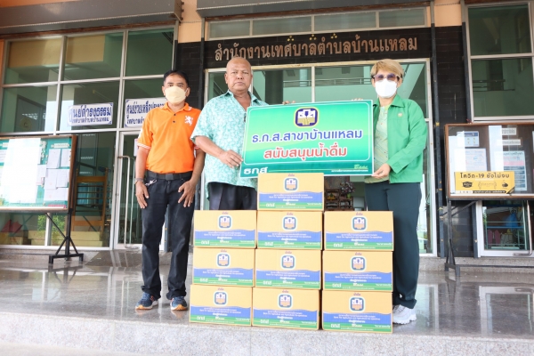 ธนาคาร ธ.ก.ส. สาขาบ้านแหลม ได้มอบน้ำดื่มจำนวน 10 ลังให้เทศบาลตำบลบ้านแหลม
