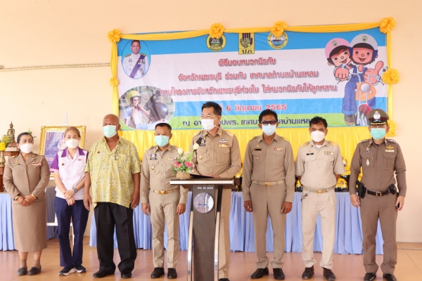 วันจันทร์ที่ 6 มิถุนายน 2565 เวลา 08.30 น. เทศบาลตำบลบ้านแหลม ร่วมกับสำนักงานป้องกันและบรรเทาสาธารณภัย จังหวัดเพชรบุรี จัดพิธีมอบหมวกนิรภัย "โครงการจังหวัดเพชรบุรีห่วงใย ใส่หมวกนิรภัยให้ลูกหลาน" โดยมีนายวิรัช เพ็ญจันทร์ หัวหน้าสำนักงานป้องกันและบรรเทาสาธารณภัย กล่าววัตถุประสงค์ของ โครงการฯ และได้ร้บเกียรติจากนายสมชัย เลิศประสิทธิพันธ์ รองผู้ว่าราชการจังหวัดเพชรบุรี เป็นประธานในการกล่าวมอบนโยบายโครงการจังหวัดเพชรบุรีห่วงใย ใส่หมวกนิรภัยให้ลูกหลาน พร้อมด้วยนายศรัณย์ เกตุทอง นายอำเภอบ้านแหลม นายวัน เมฆอัคคี นายกเทศมนตรีตำบลบ้านแหลม นายประยุทธ สุขารมย์ รองนายกเทศมนตรีตำบลบ้านแหลม นายมานะ ภุมรา ปลัดเทศบาลตำบลบ้านแหลม สมาชิกสภาเทศบาลฯ และหน่วยงานภาคีเครือข่ายร่วมมอบหมวกนิรภัยให้กับนักเรียน ณ อาคาร อปพร. เทศบาลตำบลบ้านแหลม