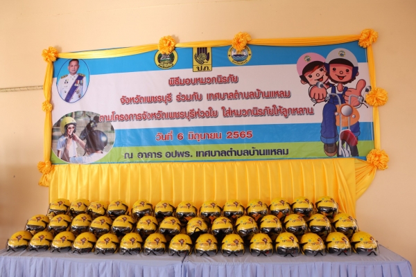 พิธีมอบหมวกนิรภัย "โครงการจังหวัดเพชรบุรีห่วงใย ใส่หมวกนิรภัยให้ลูกหลาน"