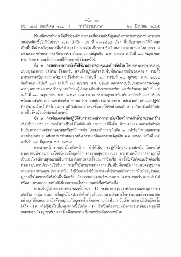 ราชกิจจานุเบกษา ประกาศ "ถอดแมสก์" ผ่อนคลายมาตรการ สวมหน้ากากอนามัย โดยความสมัครใจ-ยกเลิกกำหนดพื้นที่นำร่องท่องเที่ยว