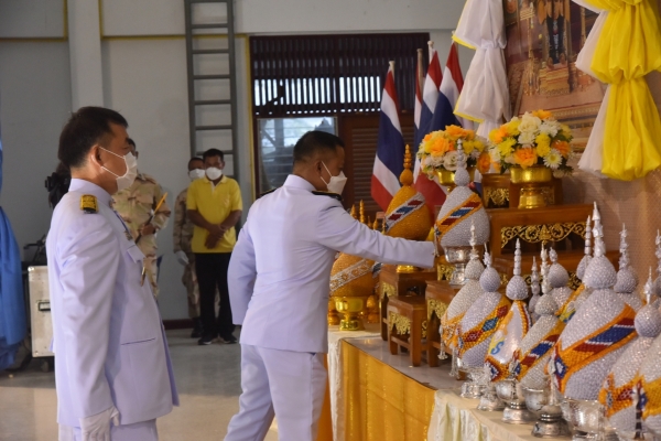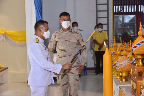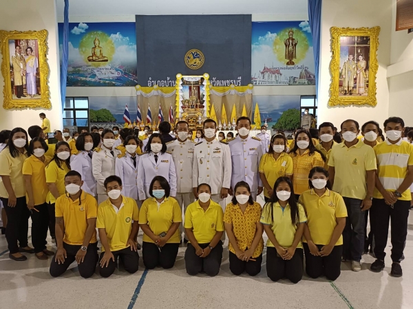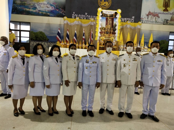 ซึ่งโอกาสนี้ นายศรัณย์ เกตุทอง นายอำเภอบ้านแหลม ประธานในพิธีถวายเครื่องราชสักการะ วางพานพุ่มเงิน พุ่มทอง และเปิดกรวยกระทงดอกไม้ธูปเทียนแพ หน้าพระบรมฉายาลักษณ์พระบาทสมเด็จพระวชิรเกล้าเจ้าอยู่หัว และจุดเทียนชัย