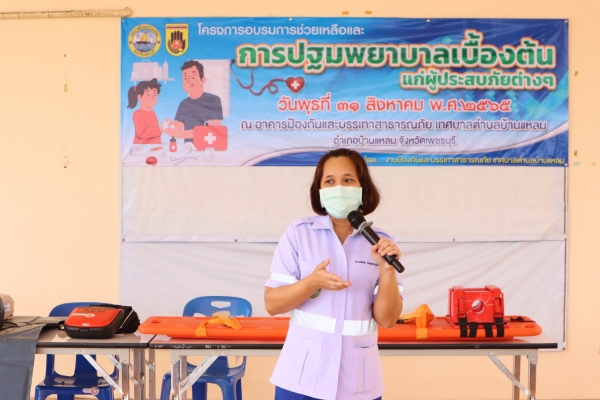 วันพุธที่ 31 สิงหาคม 2565 เวลา 08.30 น. งานป้องกันและบรรเทาสาธารณภัย เทศบาลตำบลบ้านแหลม จัดโครงการอบรมการช่วยเหลือและการปฐมพยาบาลเบื้องต้นแก่ผู้ประสบภัยต่างๆ โดยมีนายวัน เมฆอัคคี นายกเทศมนตรีตำบลบ้านแหลม เป็นประธานกล่าวเปิดโครงการดังกล่าว ณ อาคาร อปพร. เทศบาลตำบลบ้านแหลม และได้ดำเนินการซ้อมเหตุการณ์เสมือนจริง ณ ลานหน้าวัดลักษณาราม