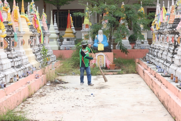 ลงพื้นที่ทำความสะอาด เก็บขยะ ตัดแต่งต้นไม้ และตัดหญ้า บริเวณสุสานสาธารณวัดต้นสน