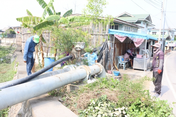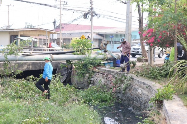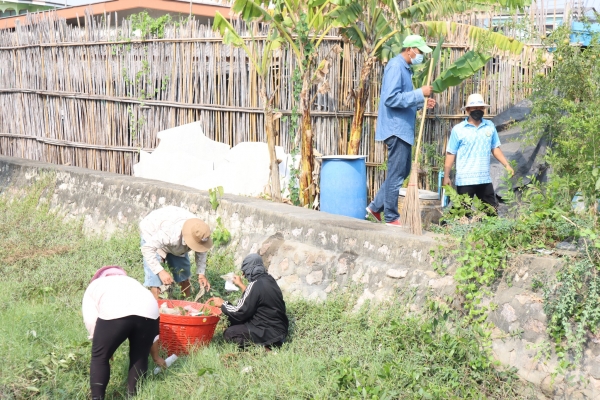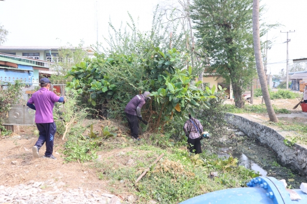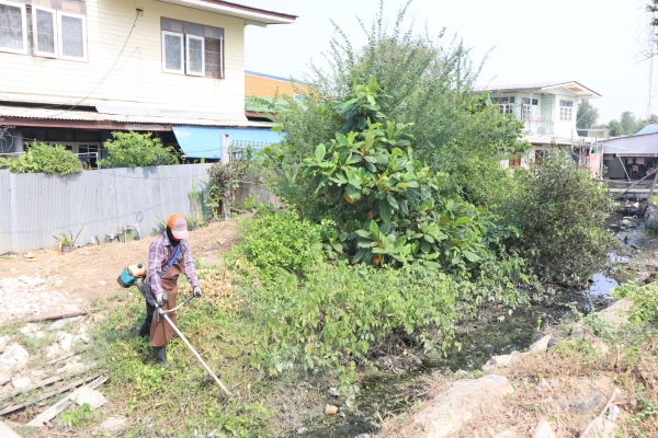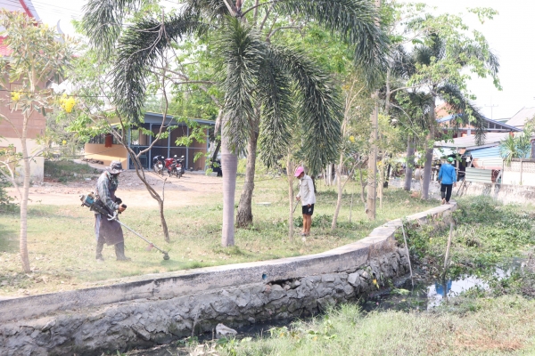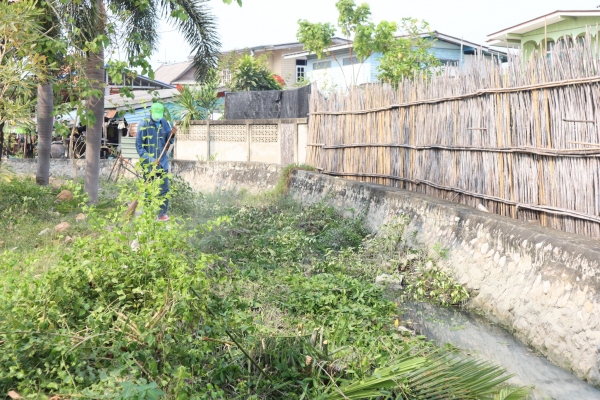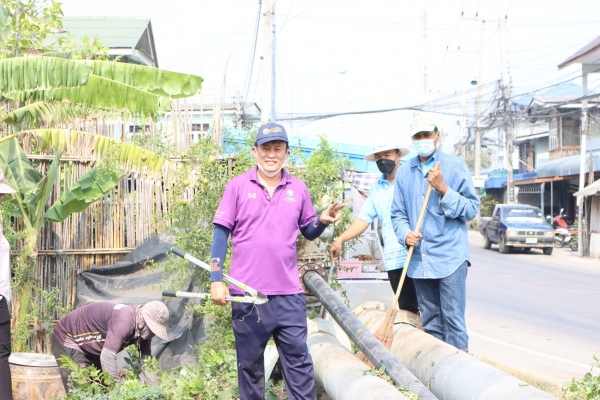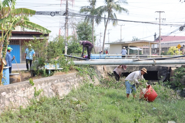 ลงพื้นที่ทำความสะอาด ตัดหญ้า และตัดกิ่งไม้คลองข้างวัดในกลาง หมู่ 3