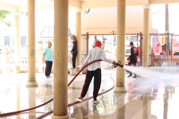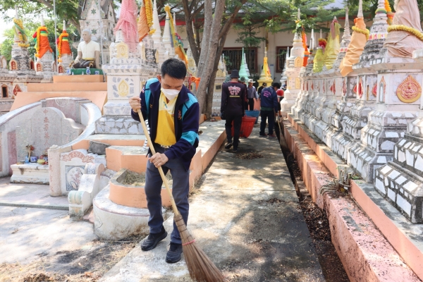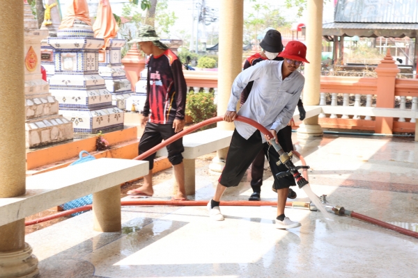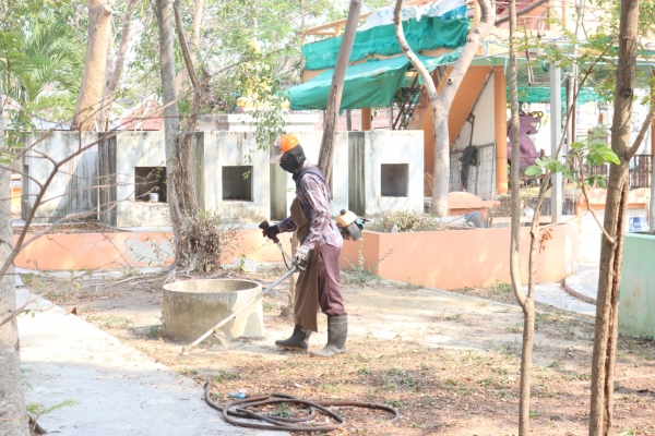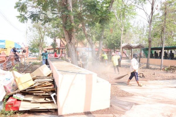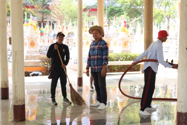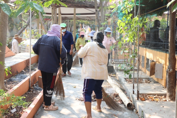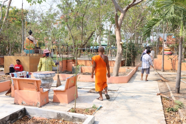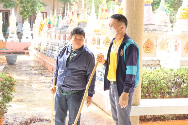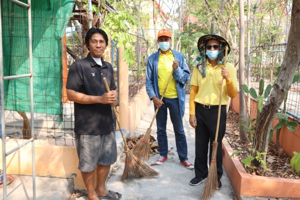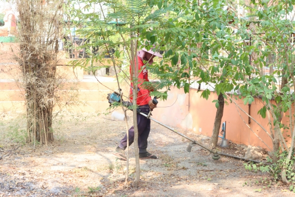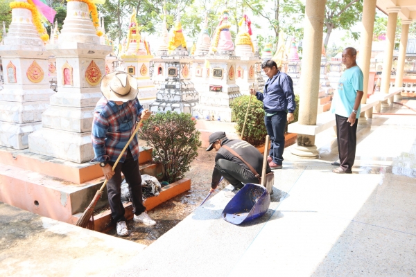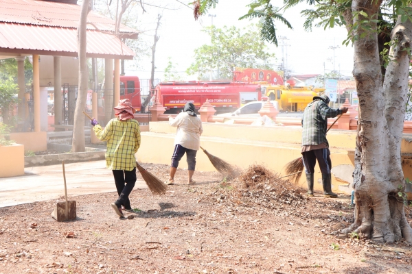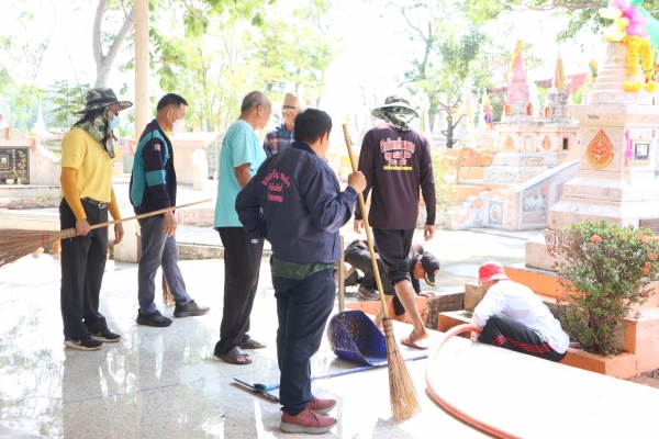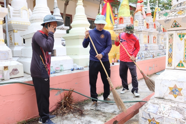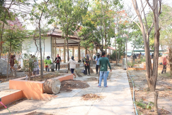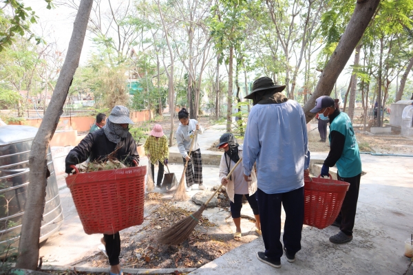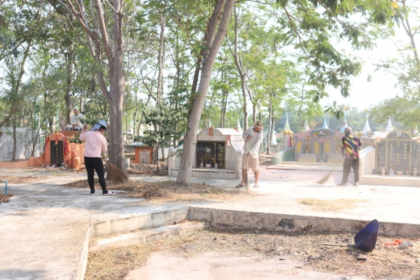 ลงพื้นที่ทำความสะอาดโดยการเก็บกวาดขยะ ตัดหญ้าและฉีดล้างพื้น บริเวณสุสานสาธารณะวัดต้นสน