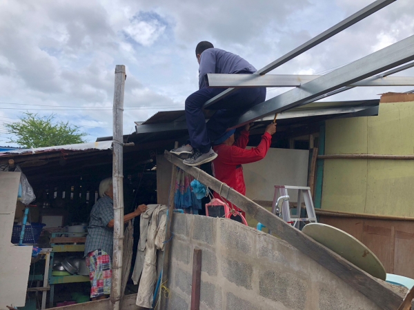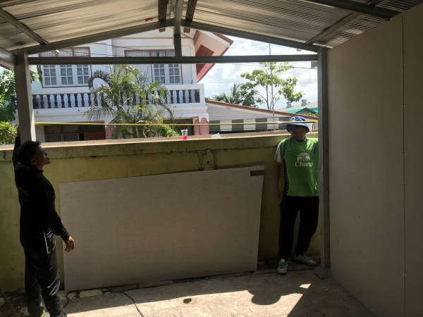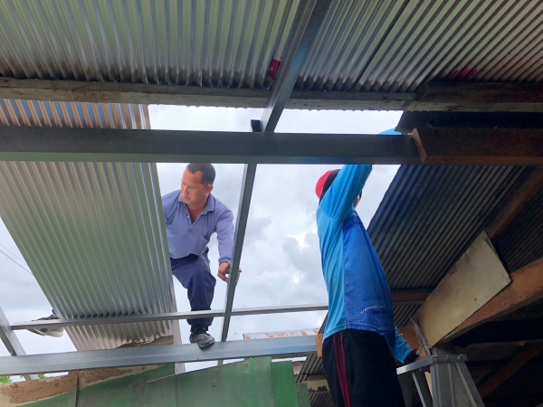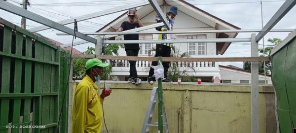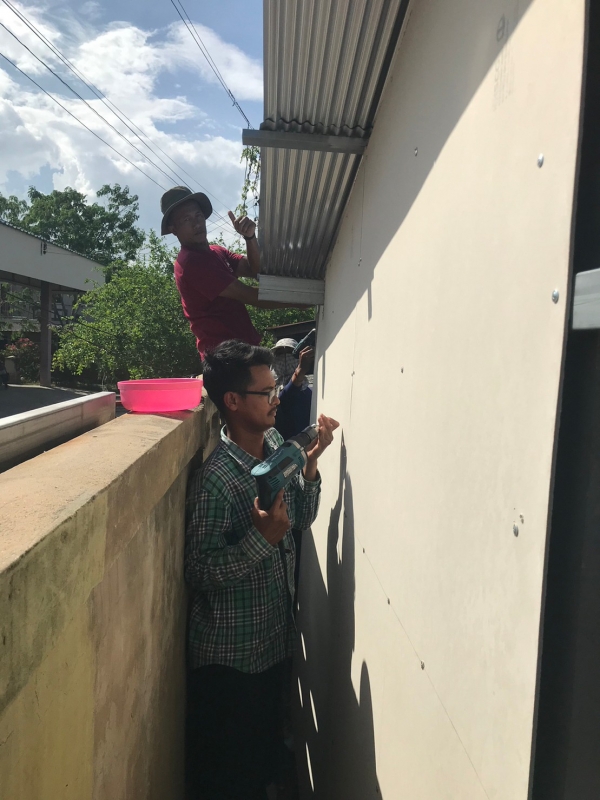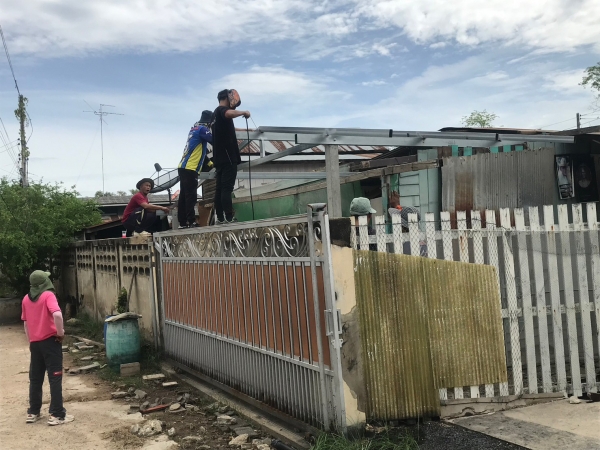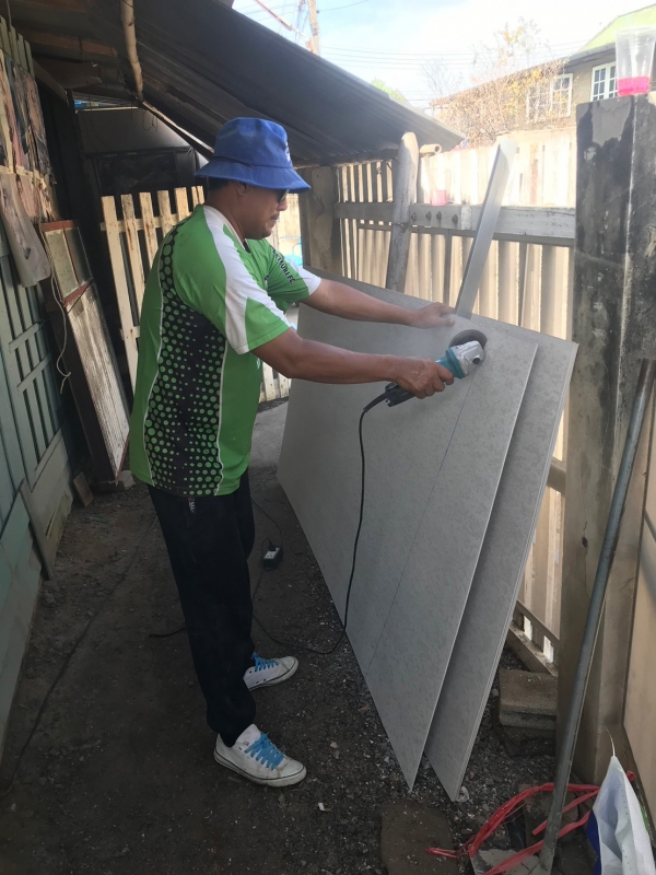 ซ่อมแซมหลังคาบ้าน และกั้นพนังห้องน้ำให้แก่นางพะเยาว์ งามเหมาะ บ้านเลขที่ 180/1 หมู่ 3