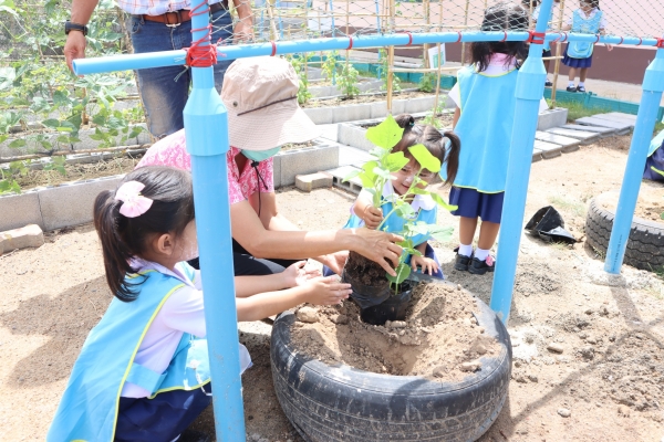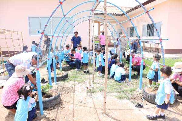 ปลูกพืชผักสวนครัวตามแนวปรัชญาเศรษฐกิจพอเพียง ตามโครงการรักษ์บ้านแหลมลดก๊าชเรือนกระจก