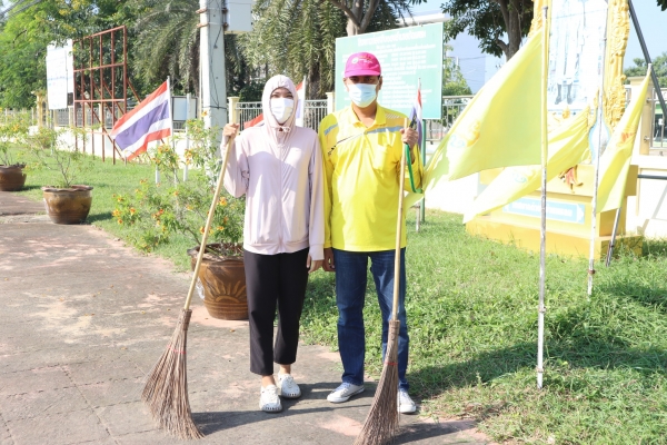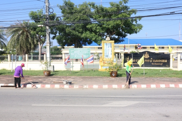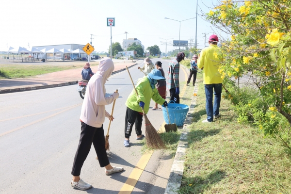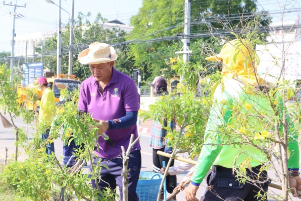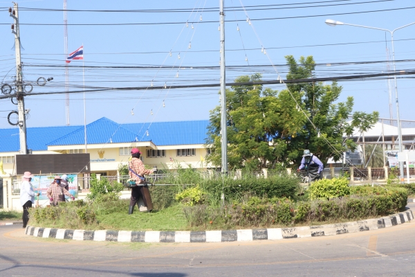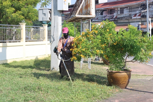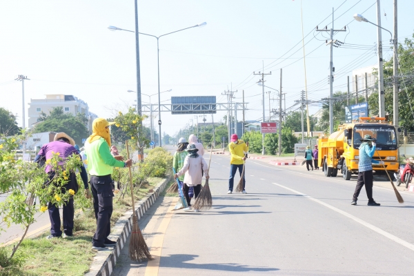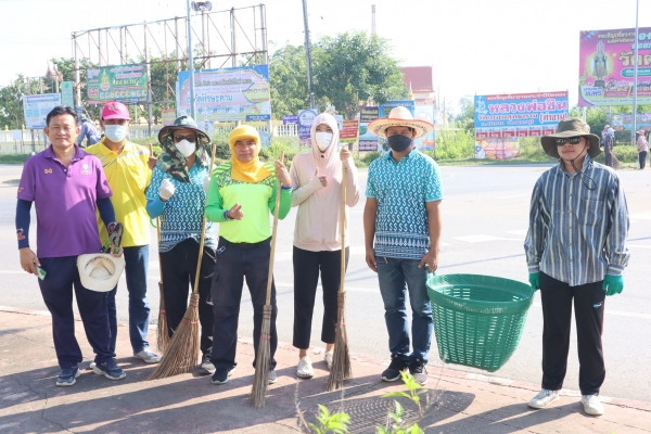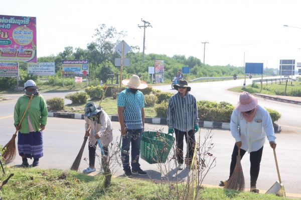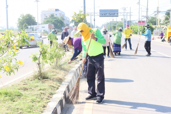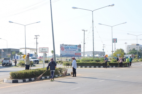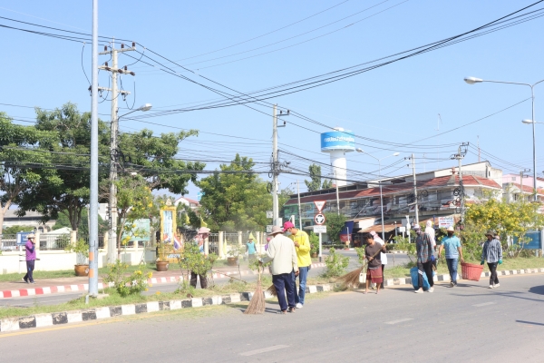 ลงพื้นที่พัฒนาทำความสะอาด โดยการเก็บกวาดขยะ ตัดต้นไม้ และตัดหญ้า บริเวณวงเวียนหน้าที่ว่าการอำเภอบ้านแหลม