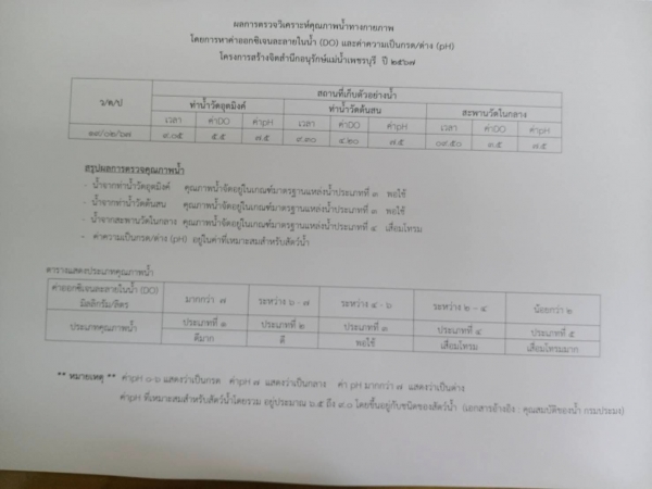 วันจันทร์ที่ 19 กุมภาพันธ์ 2567 เจ้าหน้าที่กองสาธารณสุขและสิ่งแวดล้อมเทศบาลตำบลบ้านแหลม ลงพื้นที่เก็บตัวอย่างน้ำคลอง เพื่อนำไปตรวจวิเคราะห์คุณภาพน้ำ โดยได้เก็บตัวอย่างน้ำจำนวน 3 แห่งด้วยกัน ซึ่งได้แก่ท่าน้ำวัดอุตมิงค์ ท่าน้ำวัดต้นสน และท่าน้ำใต้สะพานวัดในกลาง เพื่อนำไปตรวจหาค่าออกซิเจนละลายในน้ำ(DO) และค่าความเป็นกรด-ด่าง(pH) ผลการตรวจพบว่าคุณภาพน้ำจัดอยู่ประเภทที่ 3และ 4 คุณภาพน้ำพอใช้ และเสื่อมโทรม ค่า pH อยู่ในช่วงที่เหมาะสมสำหรับสัตว์น้ำ