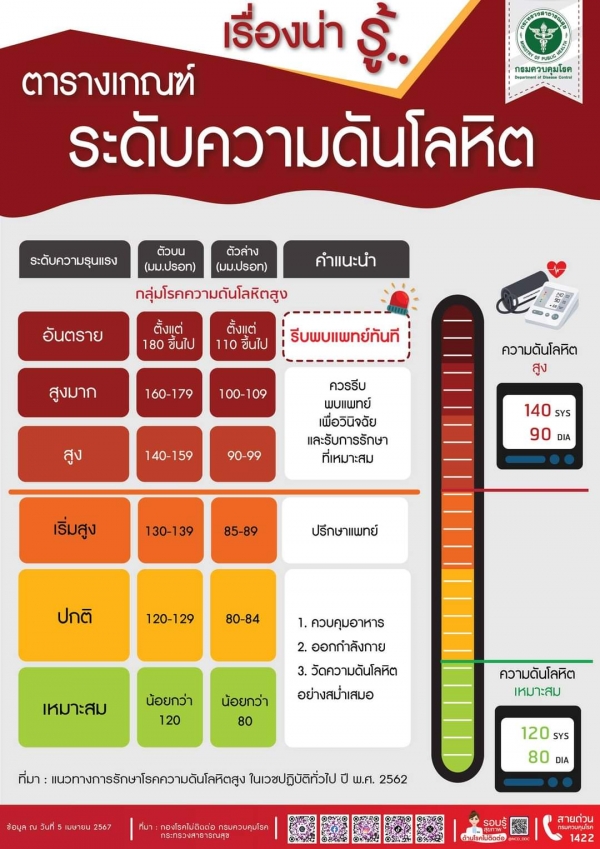 เรื่องน่ารู้เกี่ยวกับตารางเกณฑ์ระดับความดันโลหิต