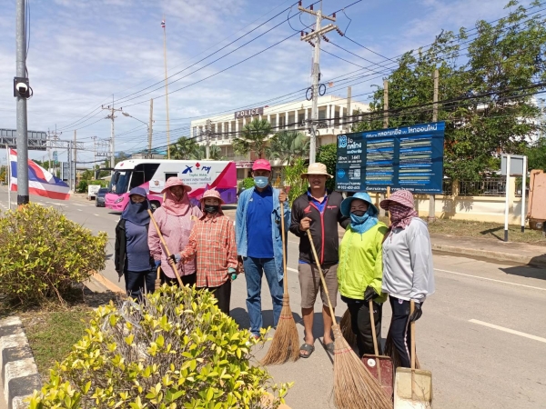 ลงพื้นที่พัฒนาทำความสะอาด โดยการเก็บ กวาดขยะ และตัดหญ้าบริเวณหน้าอำเภอบ้านแหลม