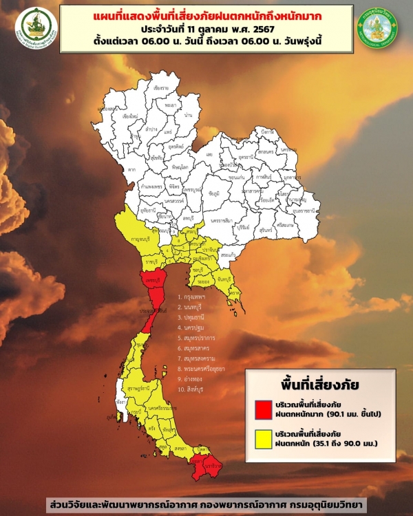 พยากรณ์อากาศประจำวันพุธที่ 11 ตุลาคม 2567 จากกรมอุตุนิยมวิทยา