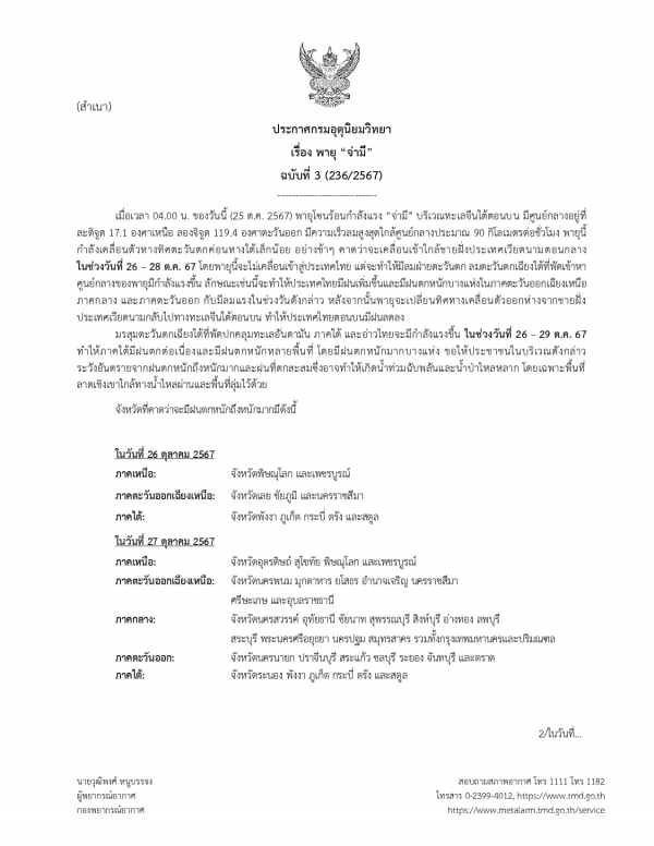 ประกาศกรมอุตุนิยมวิทยา เรื่อง พายุ “จ่ามี”