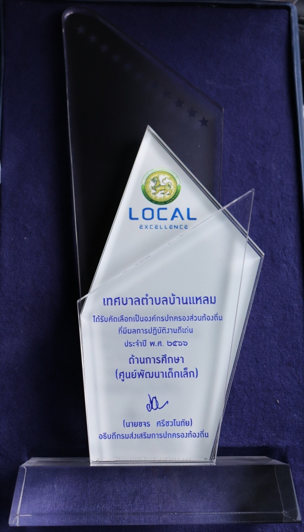 รับโล่รางวัลองค์กรปกครองส่วนท้องถิ่นที่มีผลการปฏิบัติงานดีเด่น ประจำปี พ.ศ.2566 ด้านการศึกษา(ศูนย์พัฒนาเด็กเล็ก)